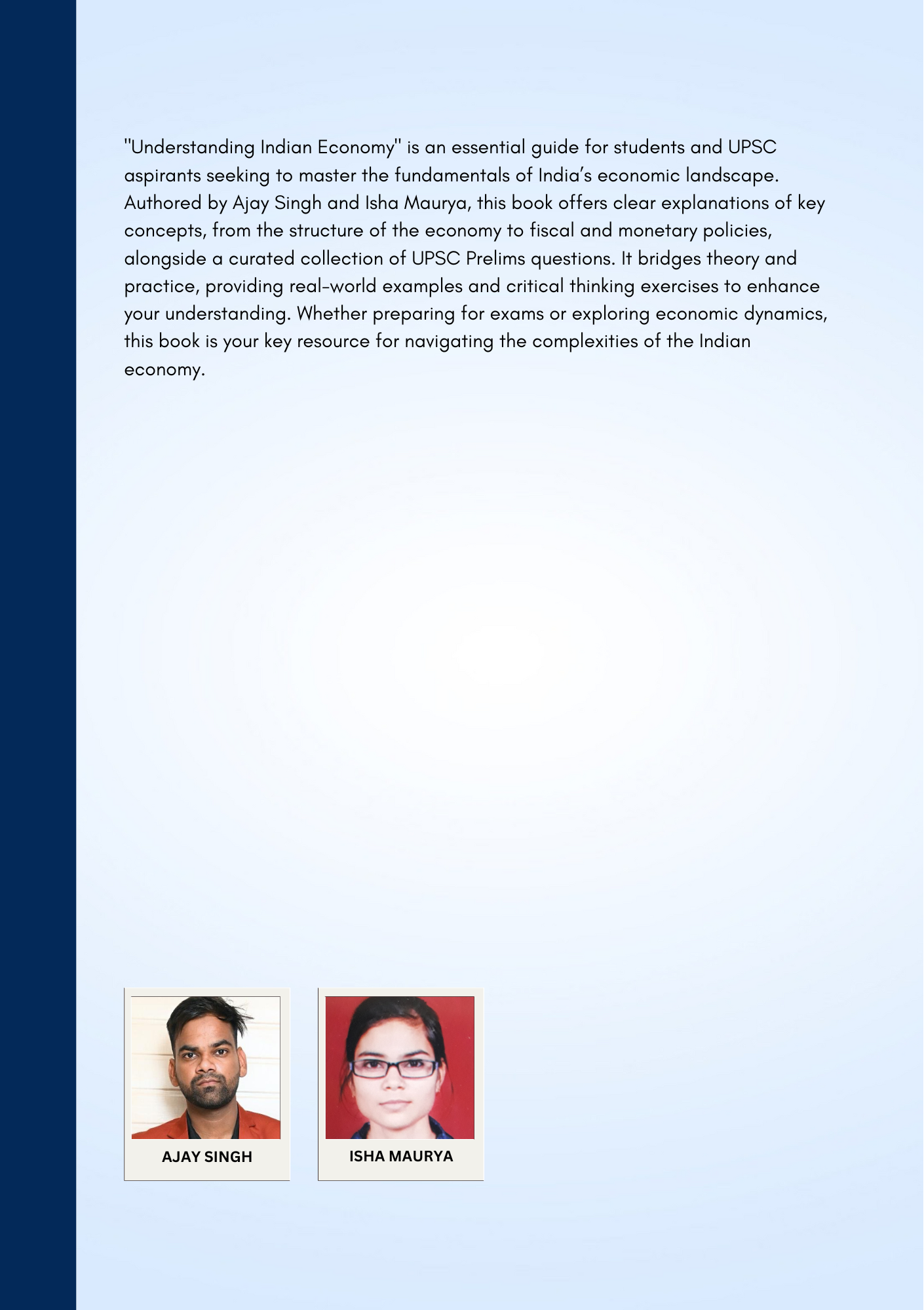 This comprehensive guide to the Indian economy provides a deep dive into its multifaceted structure, challenges, and potential. Understanding Indian Economy by Ajay Singh and Isha Maurya combines expert insights with accessible language, making it an essential resource for students, educators, policy enthusiasts, and aspirants of competitive exams like UPSC, State Public Service Commissions, and other government exams.